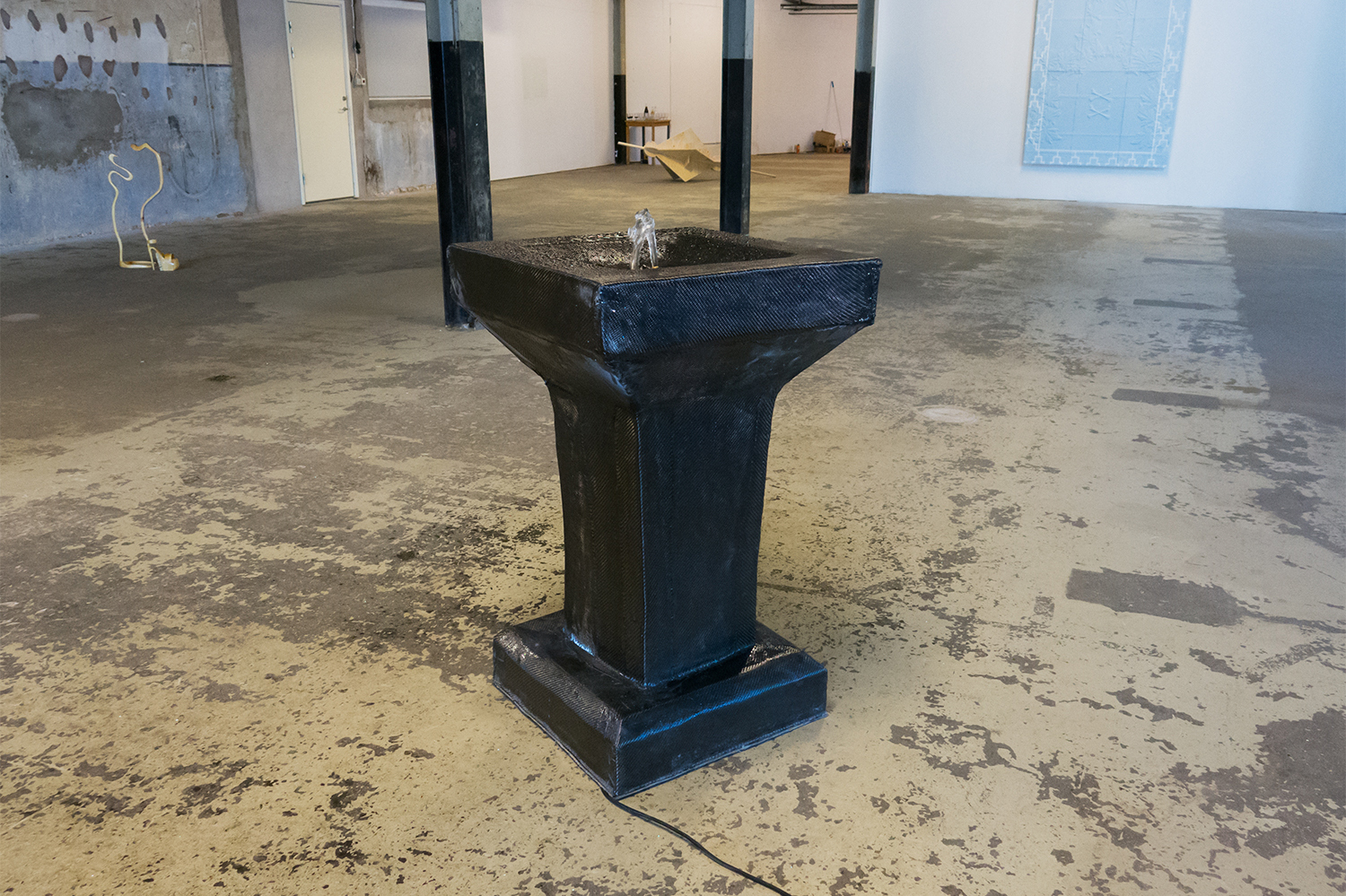 Styrofoam, carbon fibre, epoxy, plastic tubing, brass, water pump. Shown as part of the exhibition ‘Agora - flytta på dig du skymmer solen’ at Not Quite, Fengersfors together with PA Sandberg, Malin Norberg, Ferdinand Evaldsson and JP Wallner. 2024